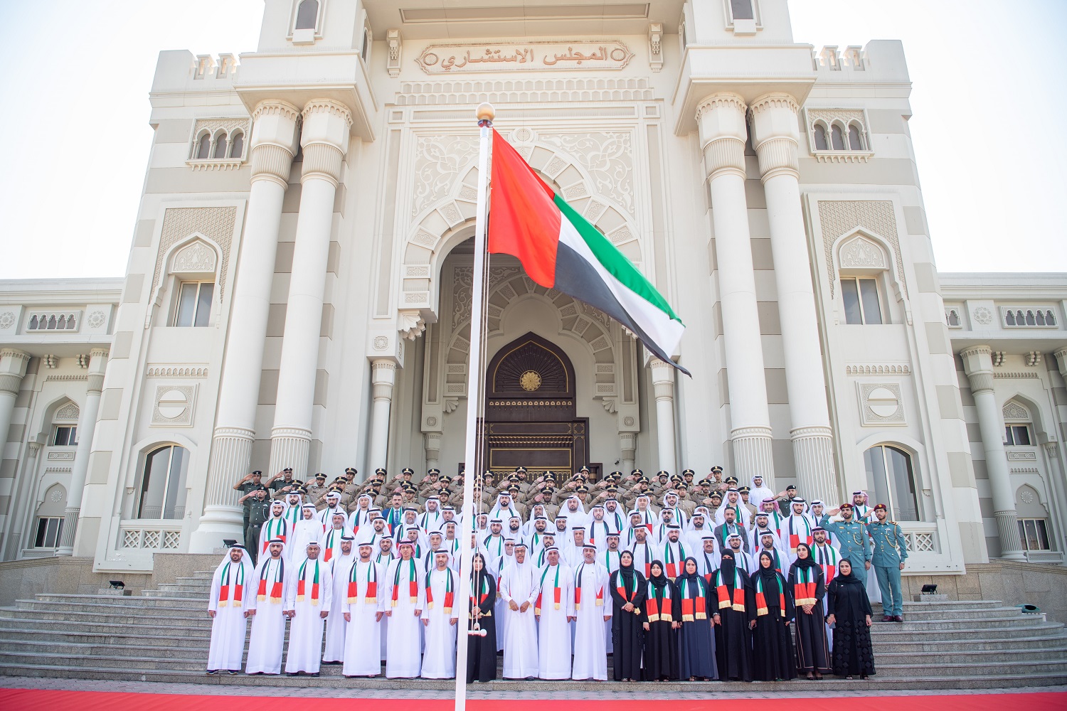 المجلس الاستشاري لإمارة الشارقة يرفع العلم من أمام مبناه في الشارقة