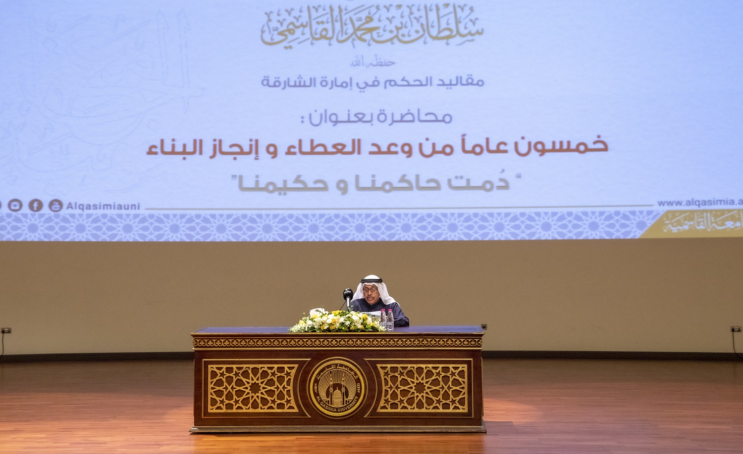 رئيس المجلس الاستشاري لإمارة الشارقة في محاضرة للجامعة القاسمية عن الذكرى الخمسين لحاكم الشارقة يستعرض خطوات التميز لإمارة الشارقة في كافة المجالات